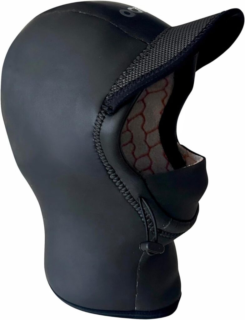 The cap protects your ears and head. It usually comes with a chin strap to help you secure it in place. If you notice your head is feeling chilled, this cap is perfect for you. Although it has less coverage than the hood, it is beneficial for trapping heat to keep your head warm in cold water.