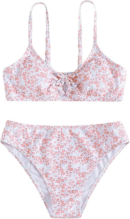 6. COZYEASE Girls’ Floral Print Knot Front Ruched Triangle Bikini