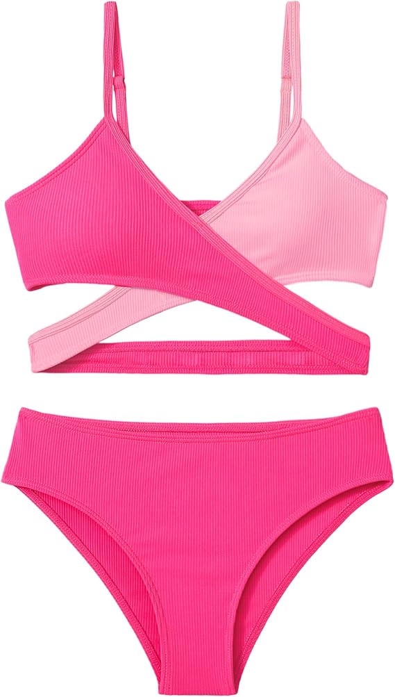 The Girls Swimsuits Bikini Set with a criss-cross design offers a chic and fun look that’s perfect for beach days or poolside relaxation.